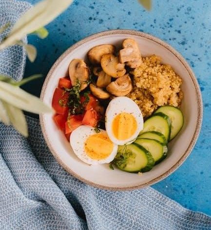 Eggs are a versatile and nutrient-dense choice, providing essential amino acids; Plant-based protein sources like tofu, tempeh, and lentils are also valuable, especially for vegetarian or vegan meal plans. When evaluating a PDF, ensure it details protein quantities for each carb cycling phase.